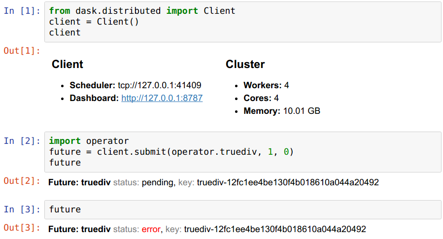 More information is available at https://distributed.readthedocs.org/en/latest/asynchronous.html.