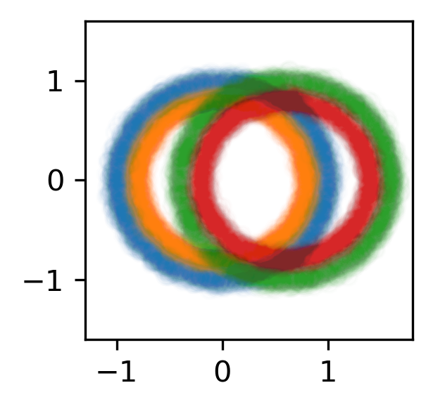 >>> X, y = make_circles(n_classes=4, n_features=6, n_informative=2)